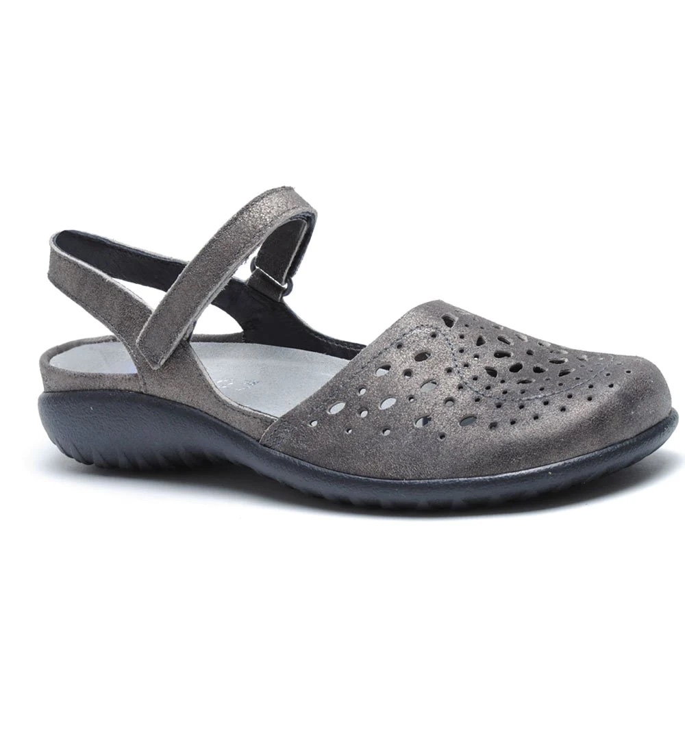 The Arataki is a closed toe slingback shoe with unique cut out designs. This style has a hook and loop closure at the instep. Naot’s removable, anatomic cork & latex footbed is wrapped in pampering suede and molds to the shape of the foot with wear. The Koru Collection features a 1″ polyurethane sole which is extremely lightweight, durable & slip resistant. This collection uses a hand-sewn Strobel construction making it strong and extremely flexible.
