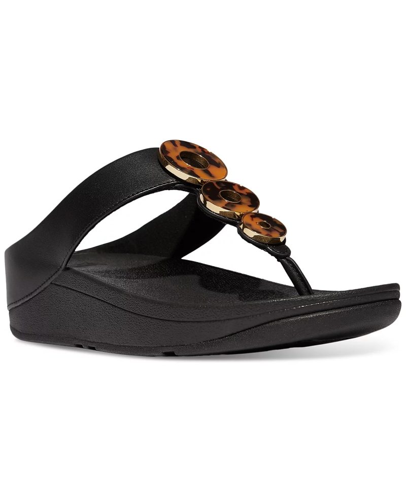 Tortoiseshell-like accents top grippy soles in a warm-weather thong profile adding cool interest to the Fino sandals by FitFlop.