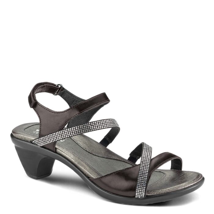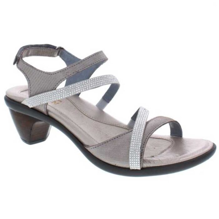 The Innovate is the perfect backstrap heel for all of your festive events! This sandal has a hook & loop backstrap & gore at the middle straps creating a custom fit. The Innovate has a padded front strap for ultimate comfort. The feminine rhinestone accents make this shoe stand out from the crowd. Naot’s anatomic cork & latex footbed is wrapped in leather with a microfiber center to prevent slipping and molds to the shape of the foot with wear. The Avantgarde Collection features a TPR sole with a metal shank. This sole offers the look of a 2″ heel without the feel.