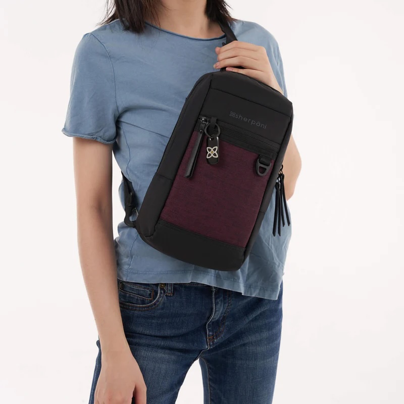 This mini sling bag is ready for adventure! The Metro features an adjustable “smart strap” that makes the design reversible for left-handed travelers. The minimalist style of this practical sling bag will help you travel more and worry less. The Metro is made from recycled material and includes Sherpani Anti-Theft technology: locking zippers, RFID protection, a wire-loop chair lock, a ReturnMe tag and a slash-proof bottom.